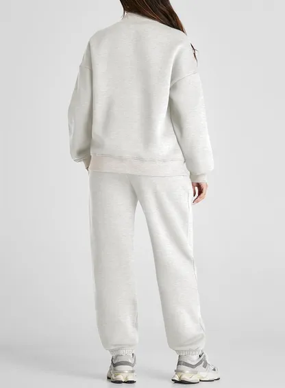 Over sized pullover sweatshirts and wide leg sweatpants are great choices for daily wear in autumn and winter.