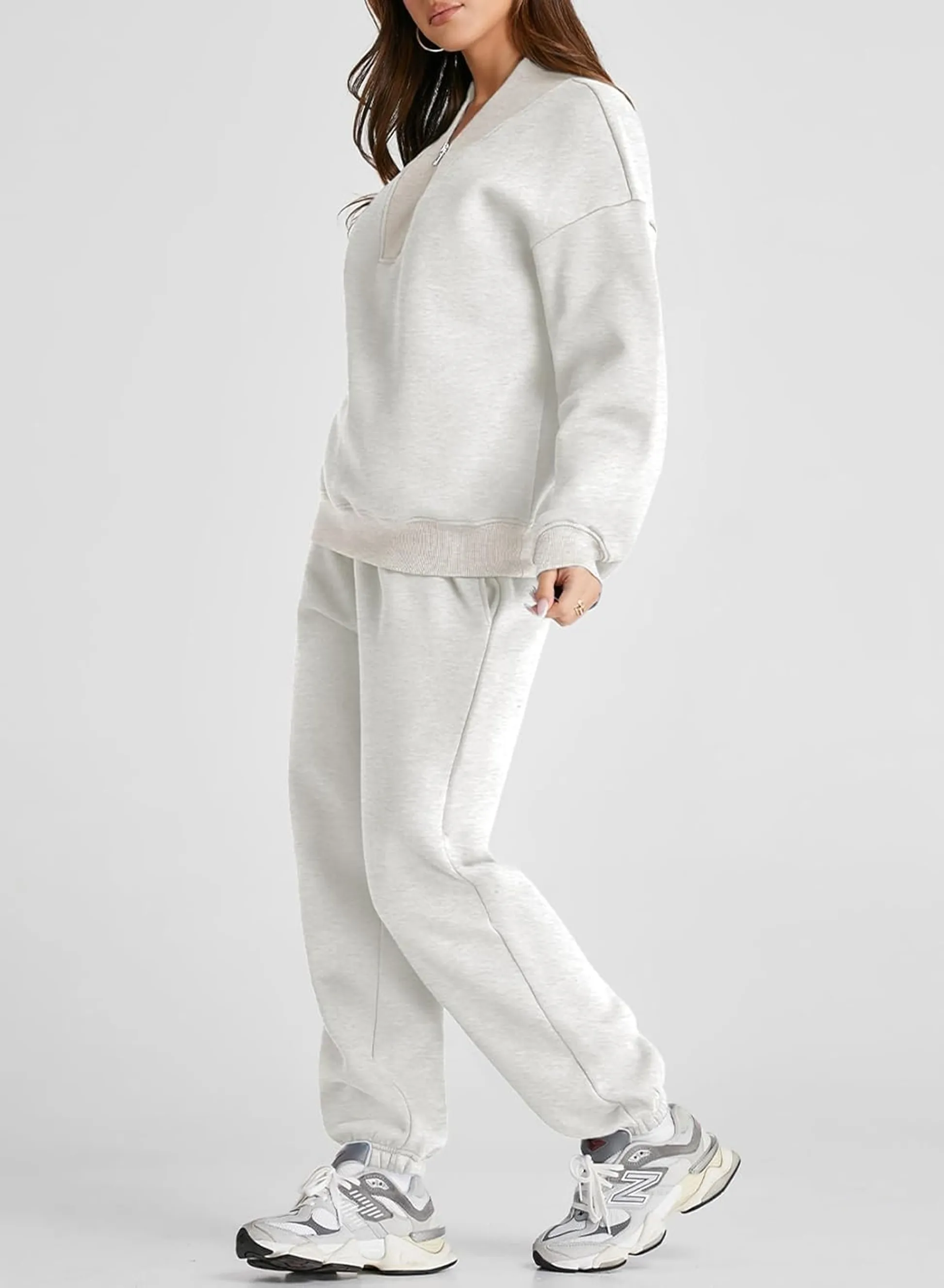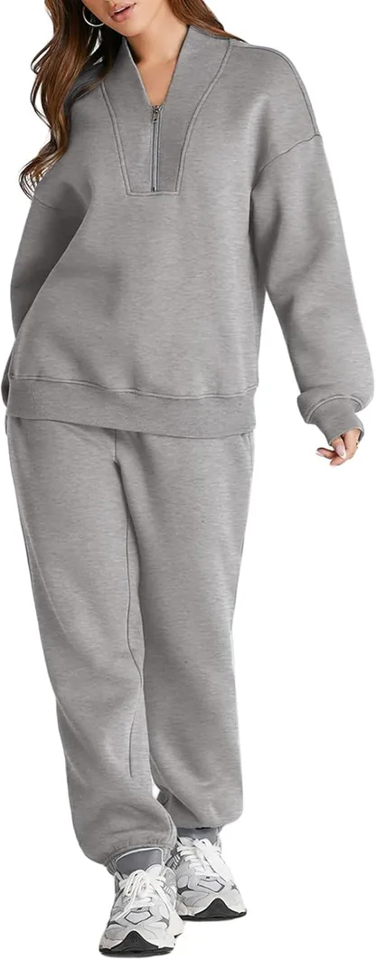 Women's 2 Piece Outfits Oversized Sweatsuit Long Sleeve Pullover Half Zipper Sweatshirt with Jogger Pants